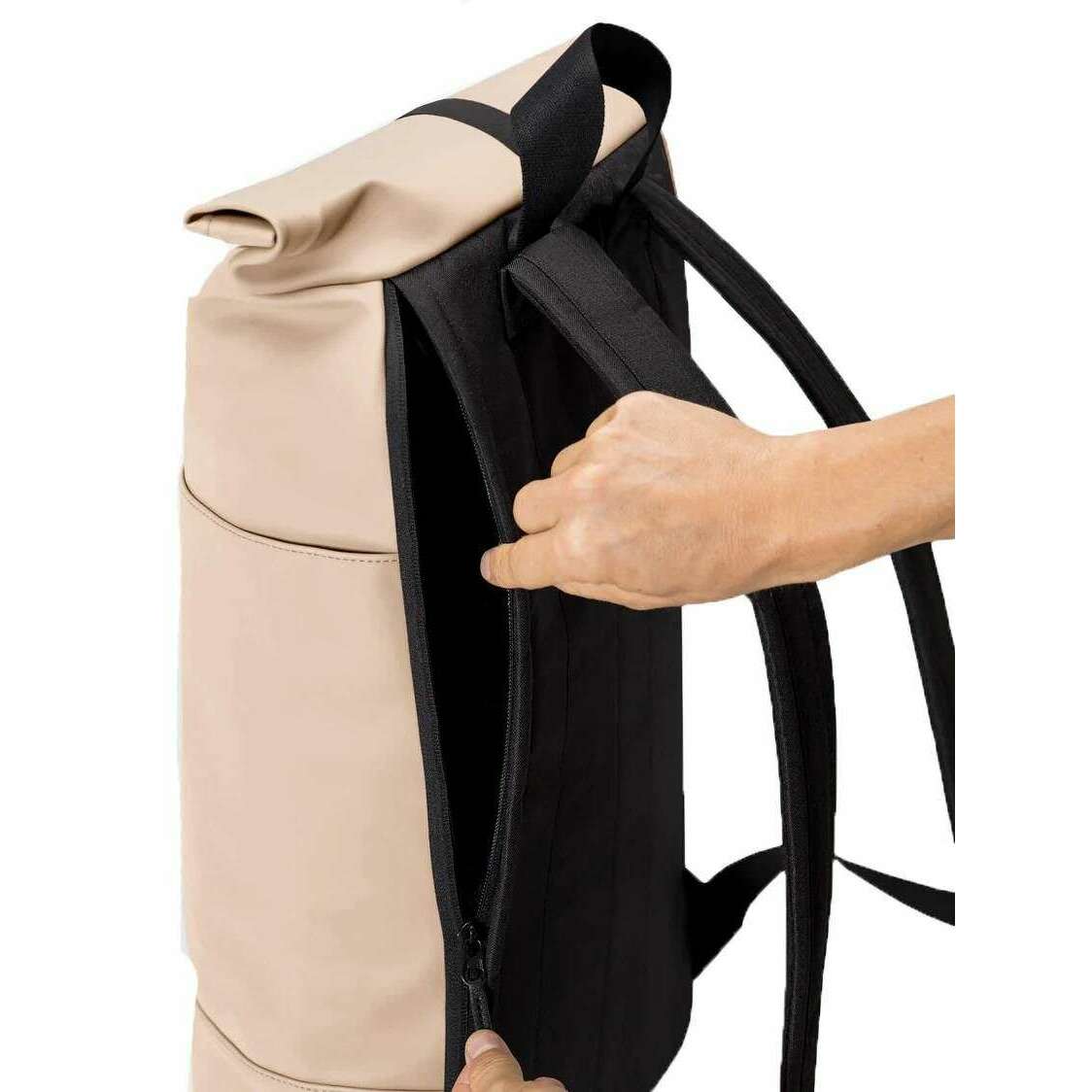 • Roll-Top-System, Klettverschluss, Vorderfach mit Reißverschluss, 16,4-Zoll-Laptopfach, wasserabweisender Reißverschluss, zwei äußere Seitentaschen, Hauptfach, elastischer Flaschenhalter, Schlüsselband, gepolsterte und verstellbare Schultergurte, geprägtes Etikett auf der Vorderseite, Rückenpolsterung, gepolsterter Boden, Fassungsvermögen: 21 l, wasserdicht, für Veganer geeignet
