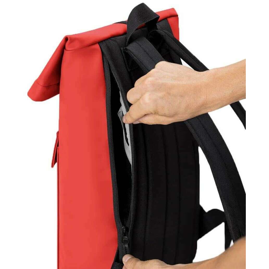 • 12 l Fassungsvermögen, Rolldeckel mit Schnallenverschluss, zusätzlicher Reißverschluss, schneller Zugriff auf den Innenraum durch seitlichen Reißverschluss, 1 Vordertasche mit Klettverschluss, 2 Netztaschen innen, elastischer Flaschenhalter innen, gepolsterte Rückseite und Unterseite, gepolsterte verstellbare Träger, Innenfach aus recyceltem Neopren mit integriertem Stoßdämpfer, passend für einen 16,4-Zoll-Laptop, wasserabweisend, kratzfest, geprägtes Logo auf der Vorderseite