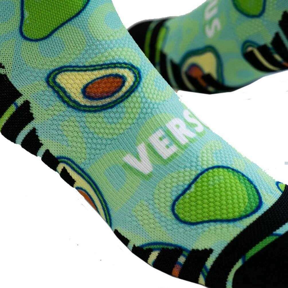 Diese Unisex-Avocado-Active-Crew-Socken der Marke Versus bestehen aus 93 % Polyester und 7 % Elasthan und sind in Grün gehalten. Auch die grün/schwarzen Socken haben ein einzigartiges Muster. Es wird empfohlen, sie bei 30 Grad zu waschen, um diese Socken in gutem Zustand zu halten. Alle Socken werden komplett mit Sockenetiketten geliefert. Die Versus Avocado Active Crew Socken – Grün/Schwarz zeichnen sich durch Stil und hochwertige Technologie aus und unterstützen Ihr Fußgewölbe und Ihren Knöchel bei Freizeitkleidung oder intensiven Aktivitäten. Diese ausgefallenen Laufsocken sind atmungsaktiv, bequem und perfekt für Marathons und alltägliche Läufe.