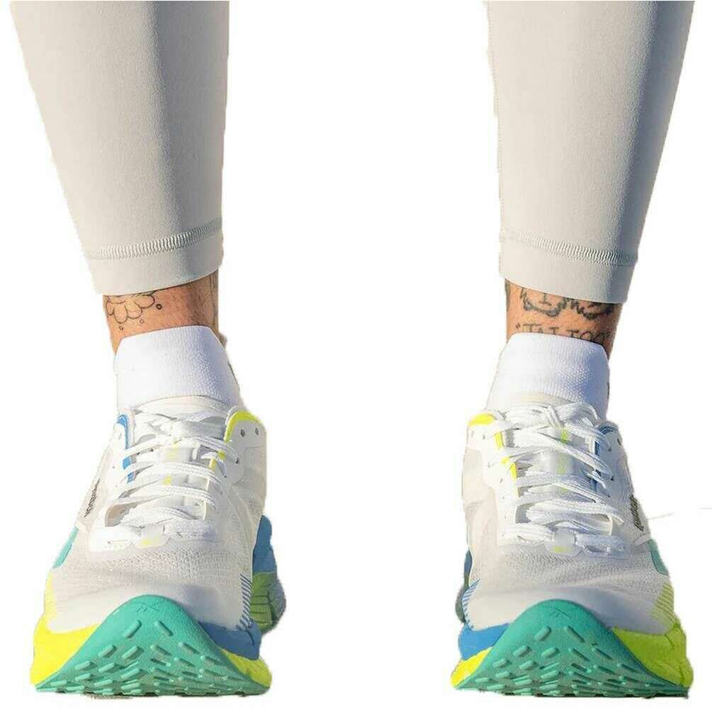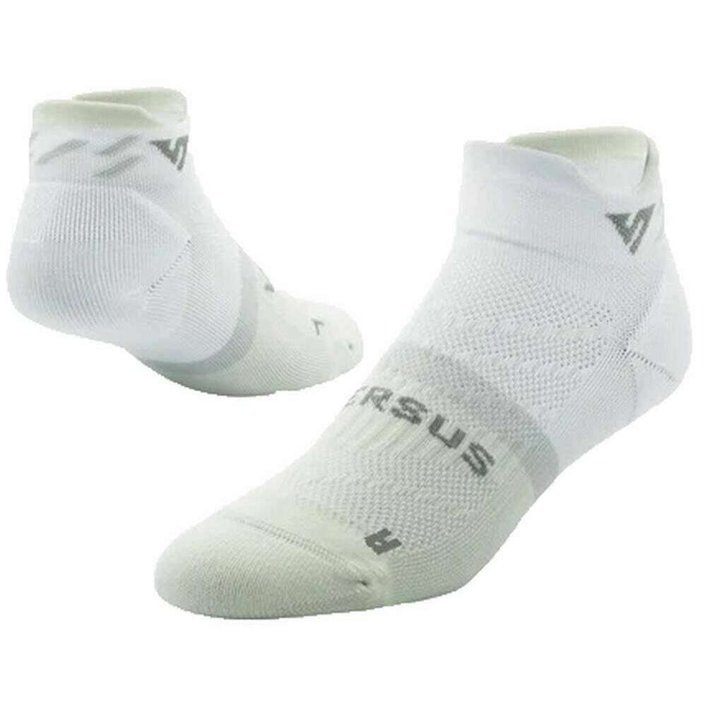 Diese weißen, gletscherfarbenen Unisex-Laufsöckchen der Marke Versus bestehen aus 75 % Nylon, 23 % Polyester und 2 % Elastan. Auch die weißen Gletschersocken sind in einem 3-Ton-Muster gestaltet. Es wird empfohlen, sie bei 30 Grad zu waschen, um diese Socken in gutem Zustand zu halten. Alle Socken werden komplett mit Sockenetiketten geliefert. Die Versus Running Knöchelsocken – White Glacier zeichnen sich durch Stil und hochwertige Technologie aus und unterstützen Ihr Fußgewölbe und Ihren Knöchel bei Freizeitkleidung oder intensiven Aktivitäten wie Laufen, Wandern und Rennen. Diese weißen Laufsocken sind durch ihr nahtloses und kurzes Design atmungsaktiv und bequem.