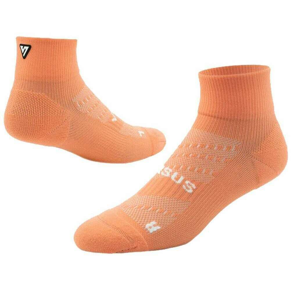 Diese pfirsichorangefarbenen Unisex-Laufsocken der Marke Versus bestehen aus 68 % Nylon, 27 % Polyester und 5 % Elastan. Auch die pfirsichorangefarbenen Socken sind in einem schlichten Muster gestaltet. Es wird empfohlen, sie bei 30 Grad zu waschen, um diese Socken in gutem Zustand zu halten. Alle Socken werden komplett mit Sockenetiketten geliefert. Die Versus Running Quarter Socken – Peachy Orange zeichnen sich durch Stil und hochwertige Technologie aus und unterstützen Ihr Fußgewölbe und Ihren Knöchel bei Freizeitkleidung oder intensiven Aktivitäten wie Laufen, Wandern und Rennen. Diese orangefarbenen Laufsocken sind durch ihr nahtloses und kurzes Design atmungsaktiv und bequem.