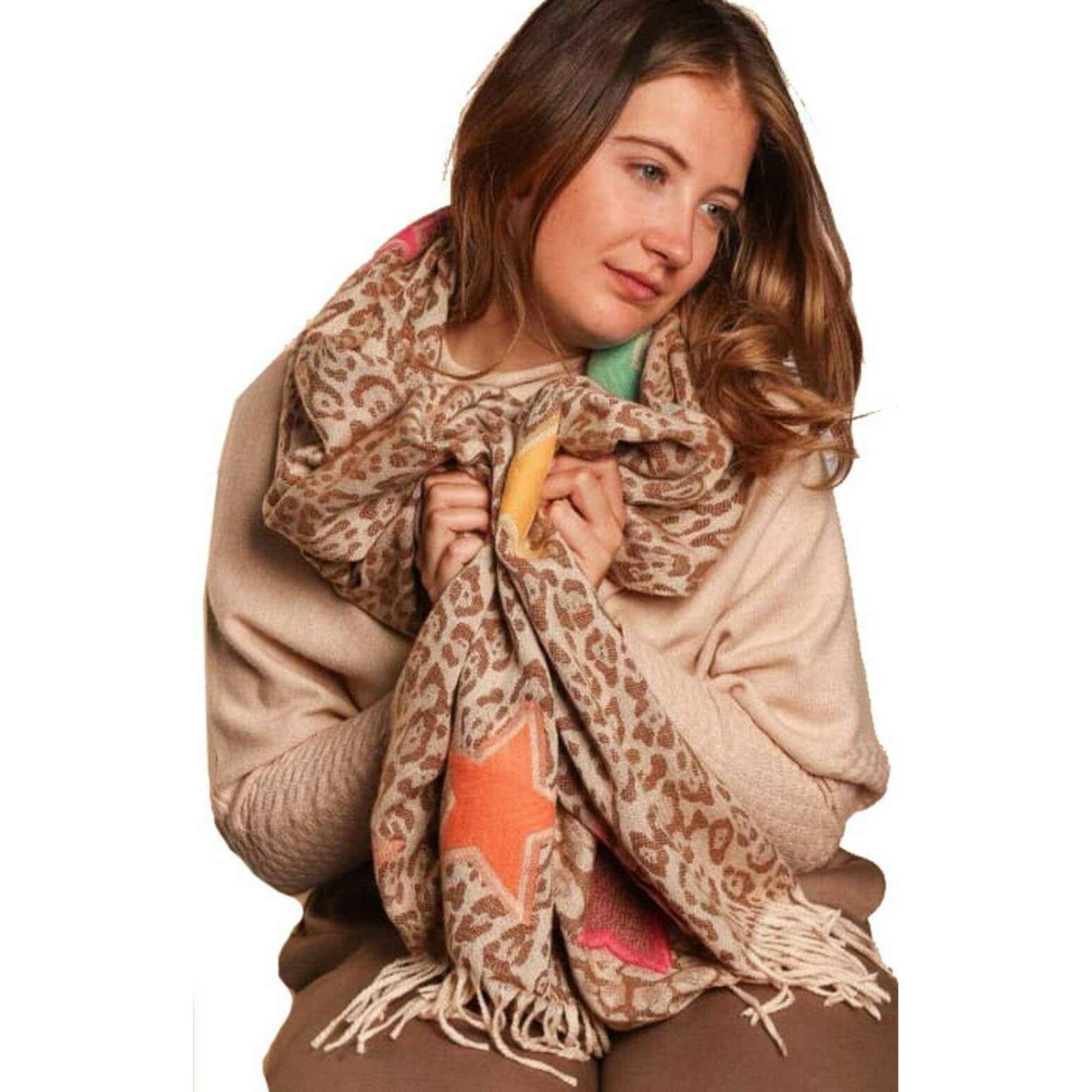 Zelly Animal Print Winter-Gewichtsschal – Braun