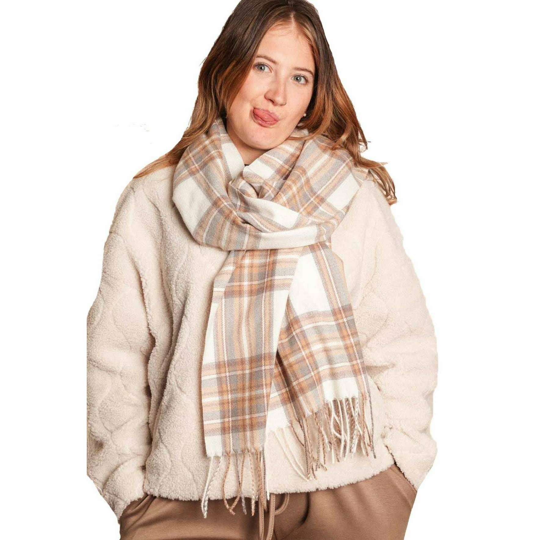 Zelly Check Winter-Gewichtsschal – Beige/Braun