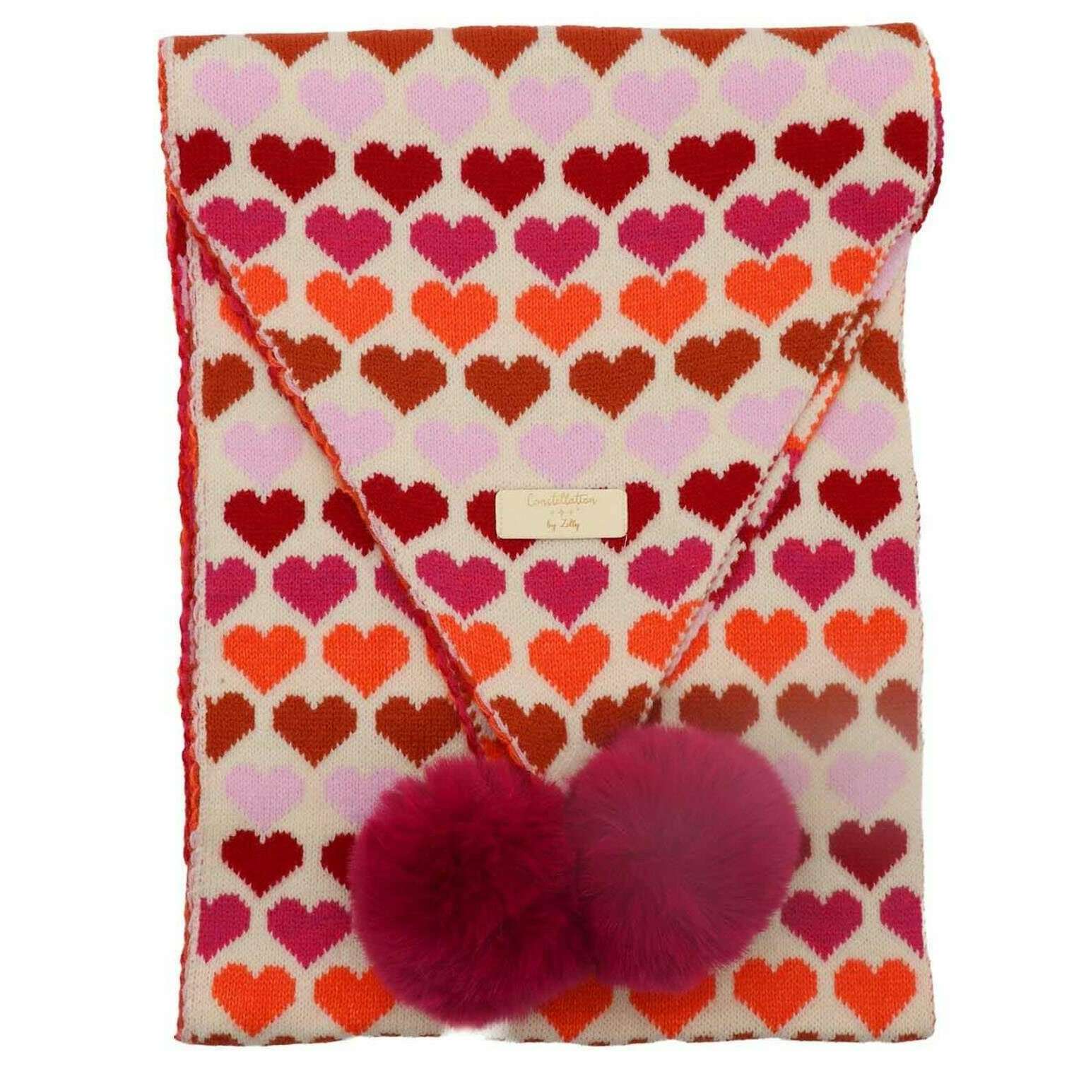 Zelly Heart Pom Pom Schal – Rosa/Rot