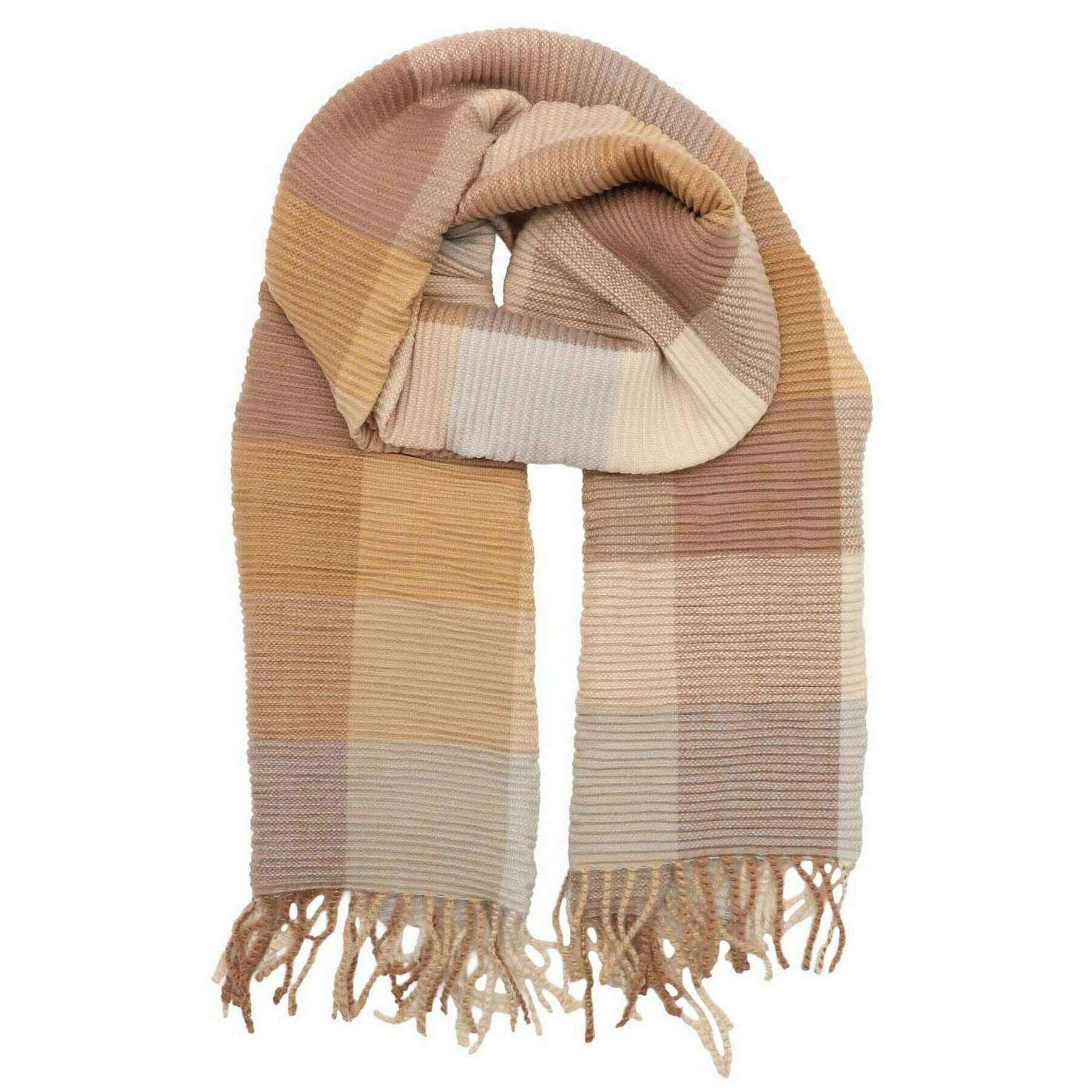 Zelly Plaid-Schal mit Plissee-Detail – Beige