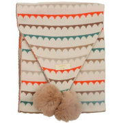 Zelly Waves Pom Pom Schal – Creme/Orange/Grün